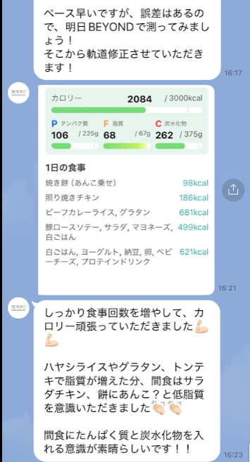 脂肪増加量を抑えながら、筋肉でしっかり増量できていました!