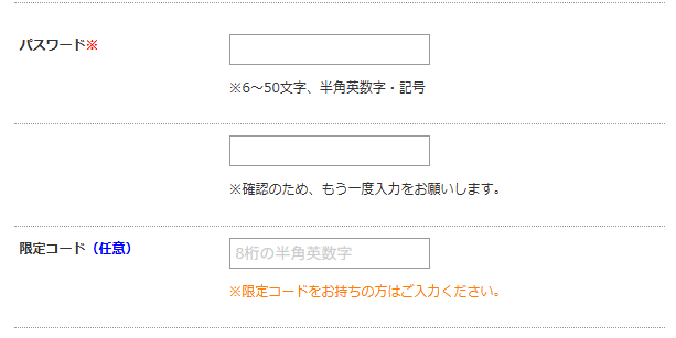 入力画面の下の方に、「限定コード(任意)」があります。