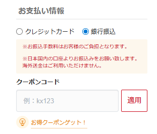 ここにクーポンコード入力♪