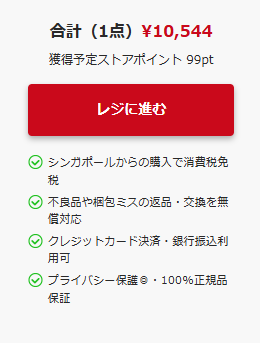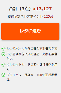 商品選択後、レジへ進むをクリック。